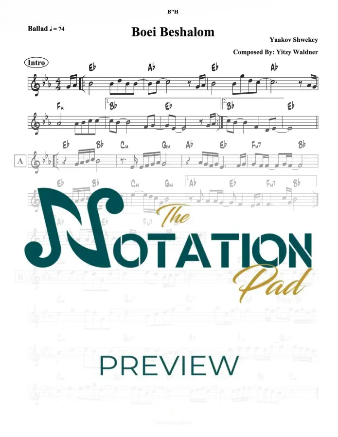 {"id":43036169470087,"title":"Lead Sheet","option1":"Lead Sheet","option2":null,"option3":null,"sku":null,"requires_shipping":false,"taxable":true,"featured_image":{"id":35783062847623,"product_id":8174292107399,"position":1,"created_at":"2025-08-12T08:01:54-04:00","updated_at":"2025-08-12T08:01:54-04:00","alt":"Boee Beshalom Lead Sheet Sheet Music","width":695,"height":900,"src":"\/\/thenotationpad.com\/cdn\/shop\/files\/boee-beshalom-lead-sheet-music-935.webp?v=1755000114","variant_ids":[43036169470087]},"available":true,"name":"Boee Beshalom - Lead Sheet","public_title":"Lead Sheet","options":["Lead Sheet"],"price":999,"weight":0,"compare_at_price":null,"inventory_management":null,"barcode":"","featured_media":{"alt":"Boee Beshalom Lead Sheet Sheet Music","id":27173760237703,"position":1,"preview_image":{"aspect_ratio":0.772,"height":900,"width":695,"src":"\/\/thenotationpad.com\/cdn\/shop\/files\/boee-beshalom-lead-sheet-music-935.webp?v=1755000114"}},"requires_selling_plan":false,"selling_plan_allocations":[]}