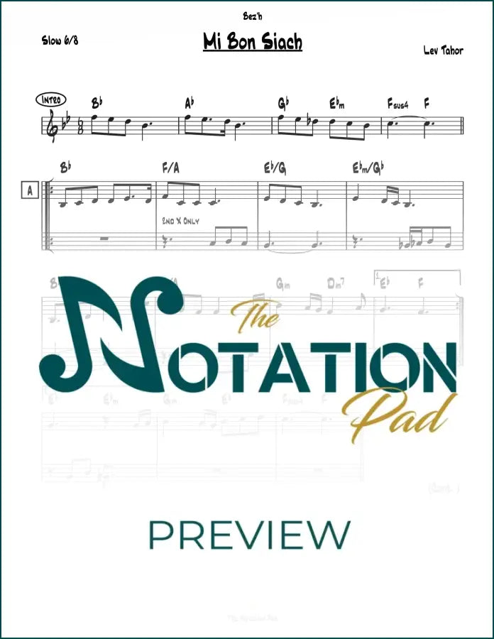{"id":43042215297159,"title":"Lead Sheet","option1":"Lead Sheet","option2":null,"option3":null,"sku":null,"requires_shipping":false,"taxable":true,"featured_image":{"id":36604557557895,"product_id":8176140157063,"position":1,"created_at":"2025-10-19T21:35:08-04:00","updated_at":"2025-10-19T21:35:08-04:00","alt":"Mi Bon Lead Sheet Sheet Music","width":696,"height":900,"src":"\/\/thenotationpad.com\/cdn\/shop\/files\/mi-bon-lev-tahor-lead-sheet-music-475.webp?v=1760924108","variant_ids":[43042215297159]},"available":true,"name":"Mi Bon - Lev Tahor - Lead Sheet","public_title":"Lead Sheet","options":["Lead Sheet"],"price":999,"weight":0,"compare_at_price":null,"inventory_management":null,"barcode":"","featured_media":{"alt":"Mi Bon Lead Sheet Sheet Music","id":27908618813575,"position":1,"preview_image":{"aspect_ratio":0.773,"height":900,"width":696,"src":"\/\/thenotationpad.com\/cdn\/shop\/files\/mi-bon-lev-tahor-lead-sheet-music-475.webp?v=1760924108"}},"requires_selling_plan":false,"selling_plan_allocations":[]}